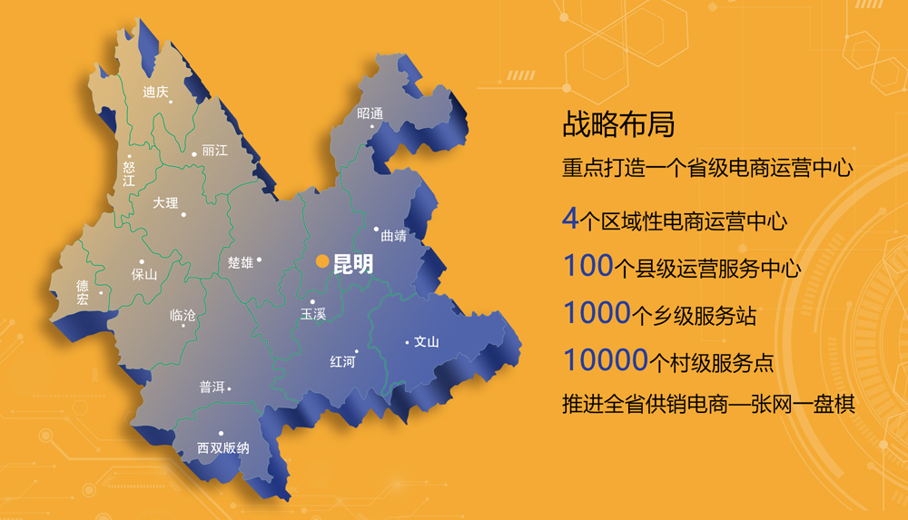 依托“互联网+基地+农户”,建立农产品质量安全追溯体系建设,通过农副产品生产和加工基地建设,提高产品质量;改造基层网点,夯实流通基础,创新农村商业模式和服务方式,加强与各层级社有企业之间联系,实现跨区域横向和跨层级纵向整合,进一步开拓农村市场,为工业品进农村、农产品进城市搭建畅通、便捷、高效的电子商务网络平台,推进全省供销合作社系统基层经营服务网点的信息化改造;完善县域物流配送体系建设,提升物流、服务、体验、质量追溯等功能,构建以电商公司为支撑,城乡实体店为基础,线上线下交易相互融合的电商经营服务体系,努力打造成为全省供销合作社系统重要的政策服务、咨询服务、交易服务、投融资服务平台,成为我省农村电子商务和云南高原特色农业发展提供综合性服务的重要力量。